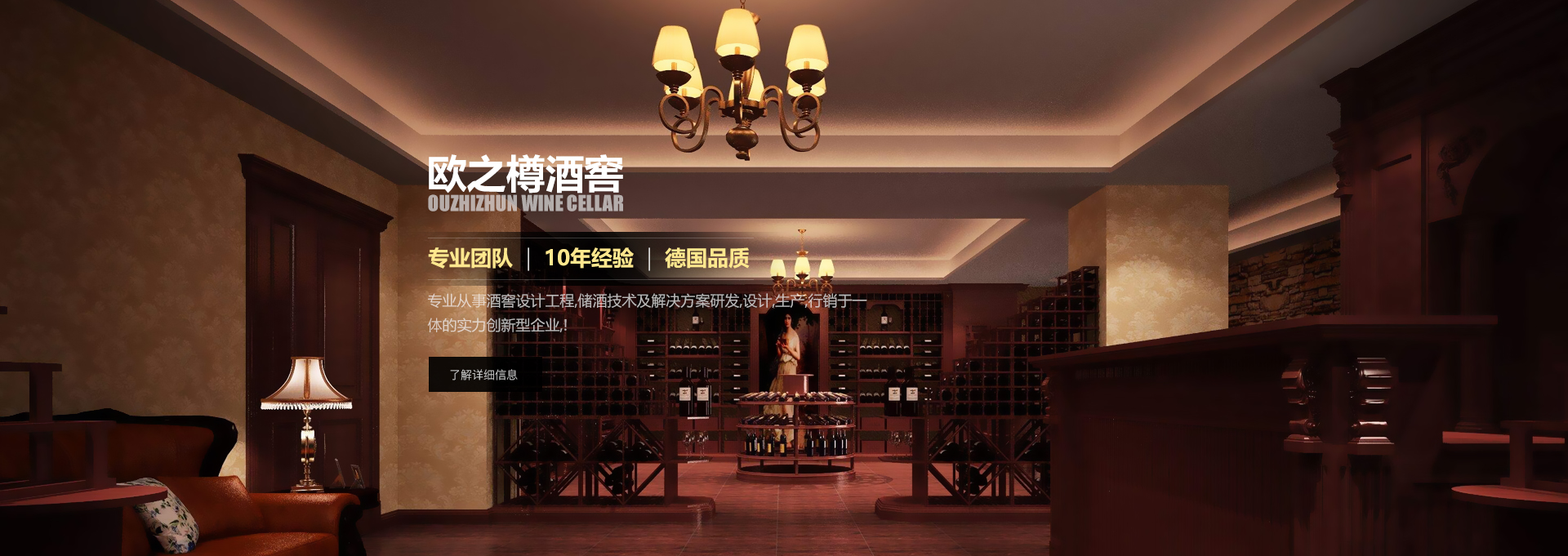 歐之樽酒窖專業(yè)的設計團隊,通過學習歐美成功酒窖的經(jīng)驗與國內(nèi)市場相結(jié)合,使得我們的設計充滿著歐美氣息的中國風。能讓你在緊張的城市氛圍中找到在大自然 中享受美酒的感覺。歐美進口的全自動控溫控濕系統(tǒng)既穩(wěn)定又方便,